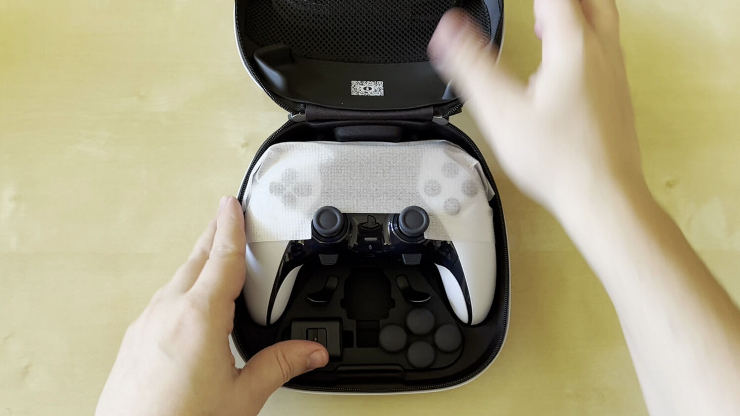 Quedándonos en los sticks, junto al DualSense Edge llegan las tapas de los sticks habituales del modelo de serie con ese formato convexo y, en el estuche, llegan cuatro tapas extra, dos cóncavas de baja altura y otras dos cóncavas más altas. Estas tapas se pueden cambiar con facilidad en un proceso de nuevo, muy sencillo, tirando para extraer suavemente mientras que para insertarlas buscaremos su posición girándolas suavemente y apretando para encajarlas en el stick.