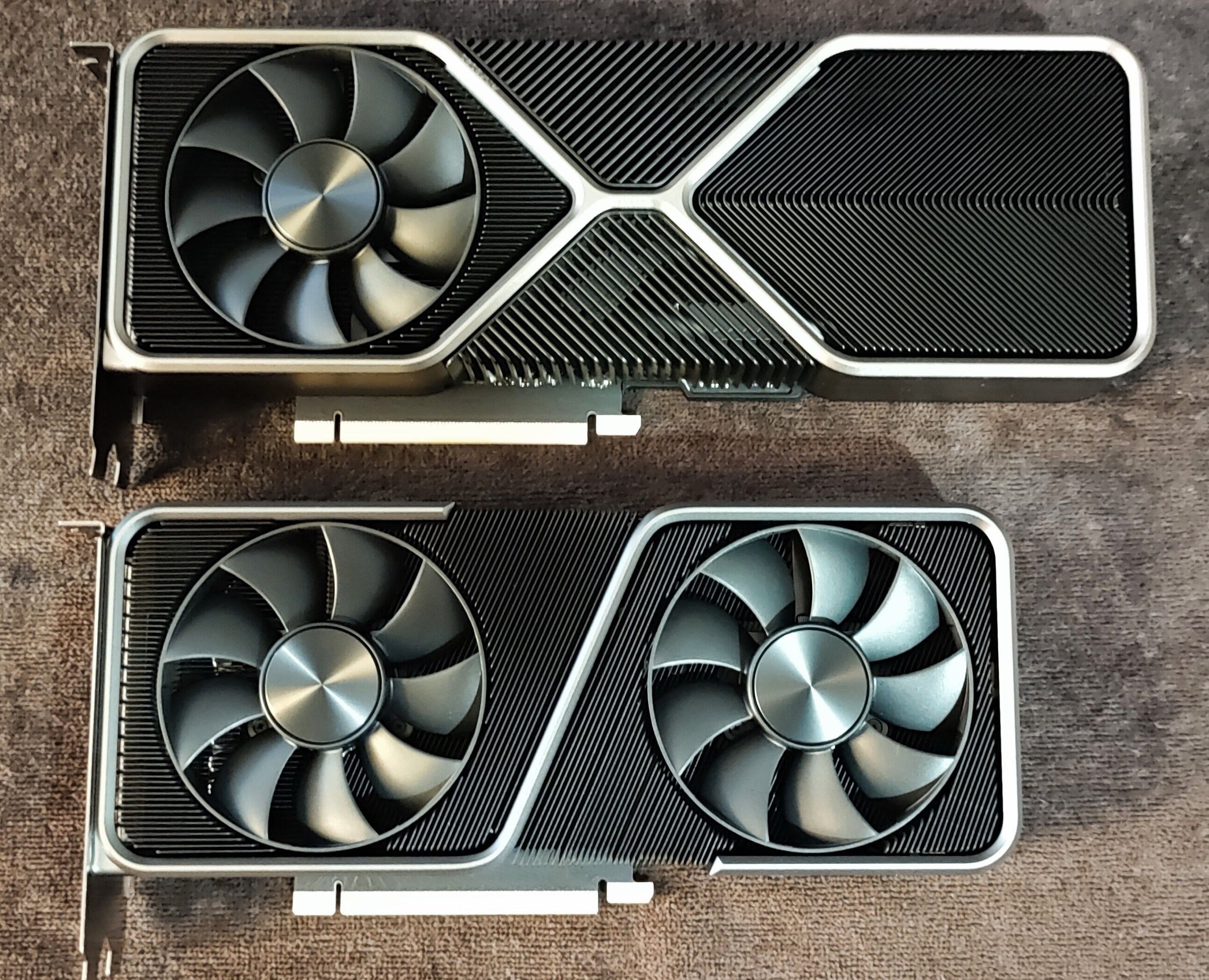 La NVIDIA GeForce RTX 3070 es una gráfica de menos tamaño que la RTX 3080 lo que nos permite que encaje mejor en configuraciones con chasis de PC más pequeños en formato Micro-ATX o quizás incluso Mini-ITX. La diferencia entre ambos modelos es clara tal y como podéis comprobar en la imagen de aquí abajo: