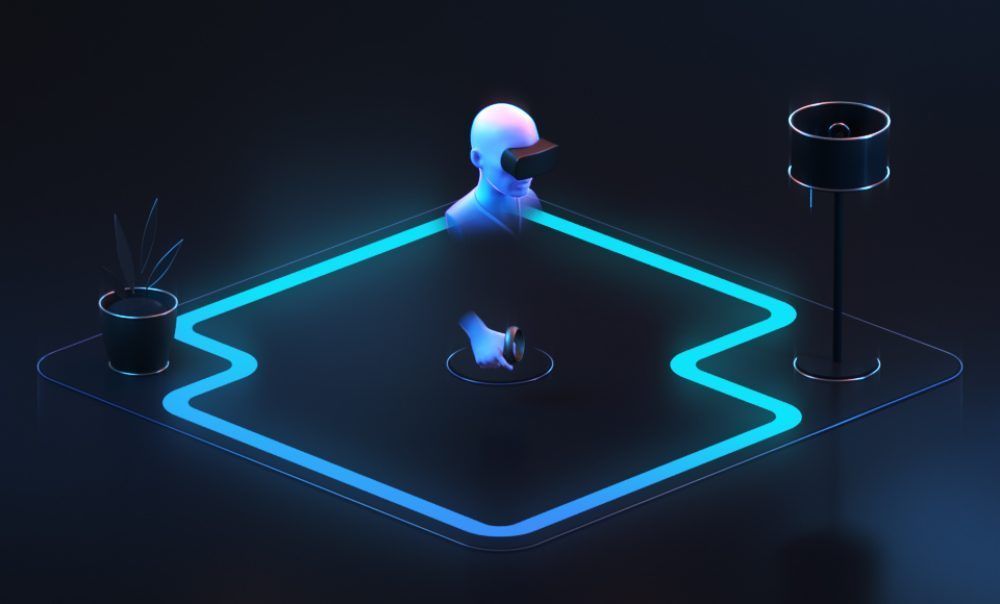 El proceso de marcado del área de juego se completa en apenas un par de minutos, activándose una rejilla azul de seguridad que se volverá roja si nos acercamos demasiado. Para localizar los mandos Touch, no solo se utilizan las cámaras del casco, sino también los leds infrarrojos de ambos dispositivos. Sin duda, un sistema práctico y sencillo que agiliza enormemente los otrora tediosos procesos de limitación del espacio de juego.