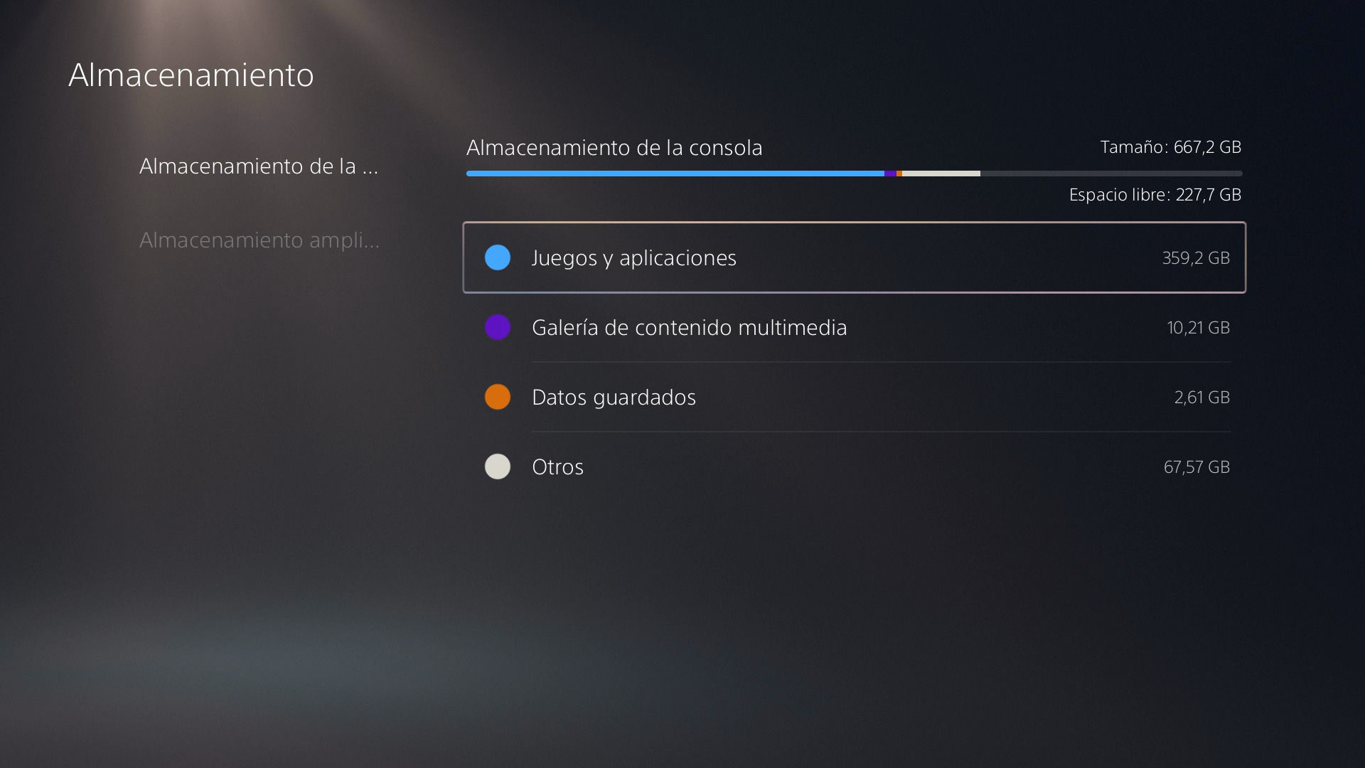 El almacenamiento disponible efectivo es de 667,2 GB, que veremos cuando se empiecen a lanzar juegos de PS5 para cuánto nos da, de momento Miles Morales ocupa 40 GB, Astro's Playroom 11 GB y Devil May Cry 5 42 GB. Un detalle a tener en cuenta es que los juegos de PS4 se pueden almacenar en un disco externo, no es necesario que estén en la memoria principal, y esto también es importante, ahora mismo las descargas de internet son mucho más rápidas que en PS4, algo que veremos si se mantiene cuando la consola llegue a todos los consumidores.