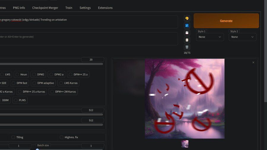 Algunos usuarios incluso han llegado a compartir una captura de cómo uno de estos motores ha dejado trozos de la firma del artista humano, cuando ha recurrido a la fusión de distintos fondos y elementos para componer la ilustración final. Conscientes de cómo esta tecnología, por ahora, tiene dificultades para identificar entre la firma y los elementos del propio dibujo, han decidido sustituir imágenes de sus propios perfiles y portfolios en ArtStation por una pancarta, con las siglas AI con el símbolo de prohibido encima, bajo el lema: "No a las imágenes generadas mediante IA".