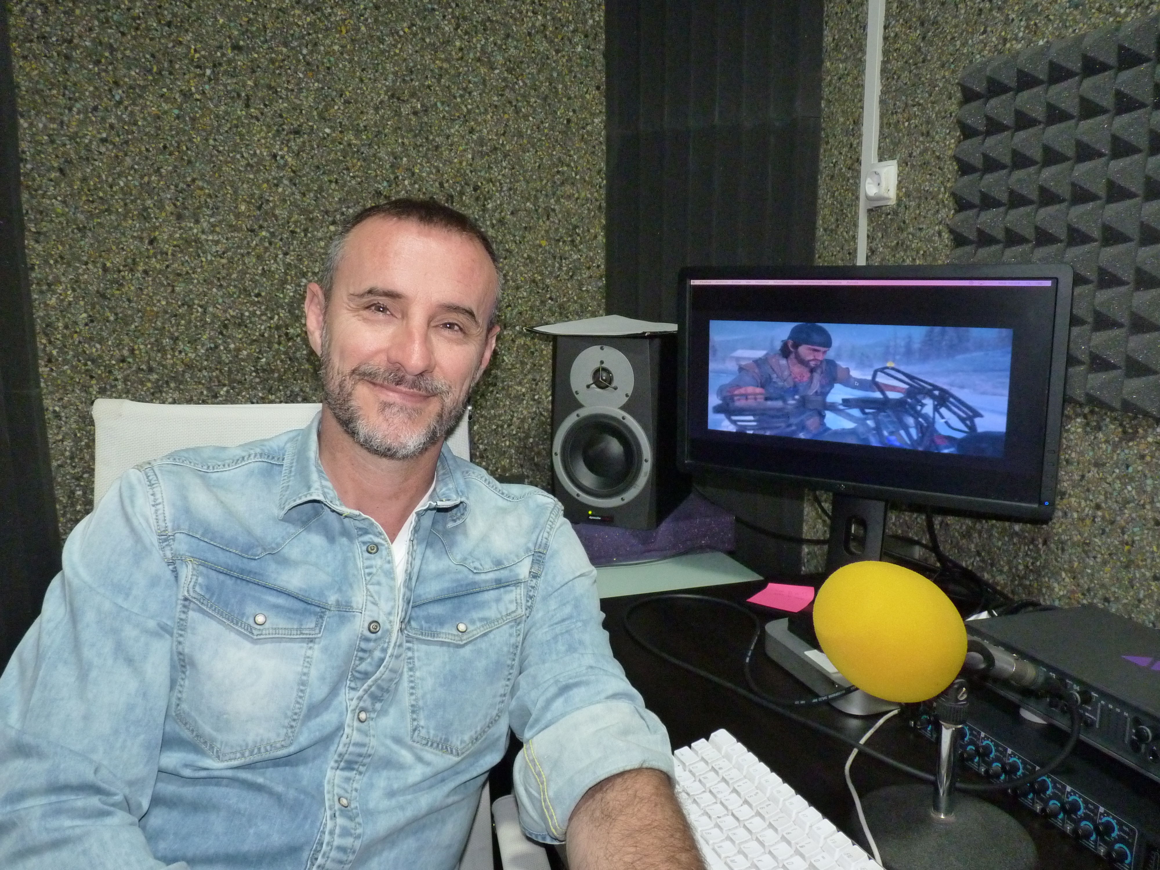 A diferencia del doblaje de una película, en un videojuego el actor de voz normalmente no ve imágenes ya que el juego suele estar en desarrollo mientras se graban las voces, lo que dificulta el trabajo de dar la entonación y el tono adecuados a cada caso. Serrano acaba de terminar el doblaje del protagonista de Days Gone, Deacon St. John, en el estudio madrileño DLMultimedia y allí nos ha enseñado la precisión necesaria para que sus frases en español encajen con la mayor precisión posible sobre los archivos de sonido de la grabación en inglés. Hemos hablado con él sobre cómo ha enfocado al personaje y sobre las peculiaridades de dar voz a un actor virtual.