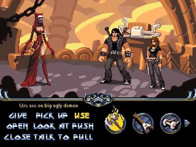 SCUMM y las aventuras gráficas siempre han ido de la mano. Brütal Legend no era desde luego una, pero el toque que Double Fine impregna en sus creaciones hace que no desentone si la imaginamos como tal.