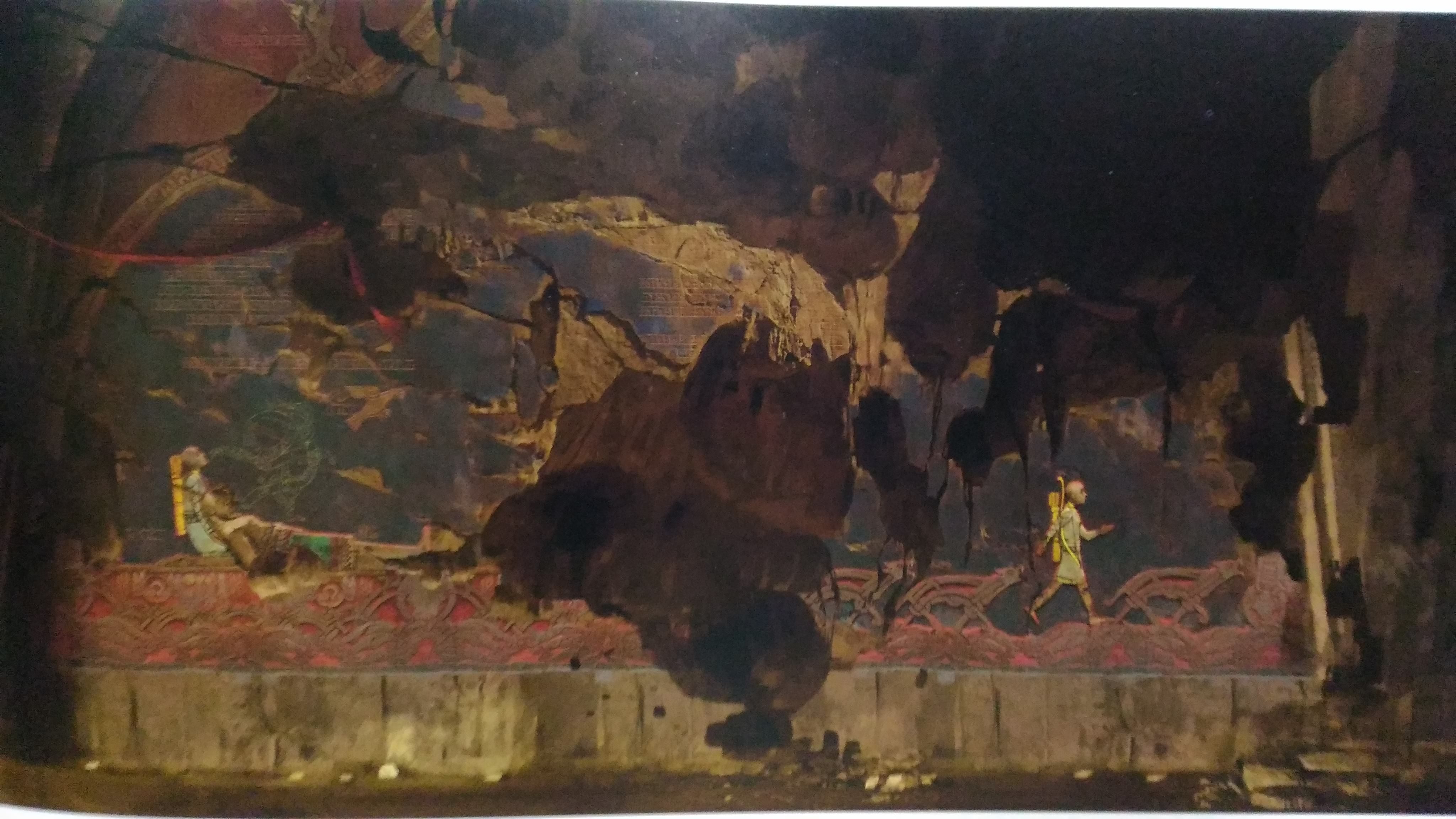 No podemos dejar de hablar de este mural sin mencionar que ninguna de las figuras representadas (ni en la versión final ni en la versión temprana) están dañadas, salvo Kratos. En ambas versiones le falta media cara, un brazo y una pierna, y aunque podría ser accidental, tenemos nuestras dudas. Atreus está intacto en ambas representaciones, y tan sólo uno de los lobos está afectado por una grieta, pero ningún personaje está dañado de la misma manera que Kratos.