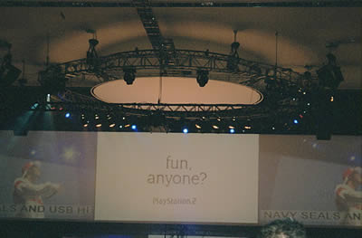 Otra de las zonas más numerosas en cuanto a público fue la de acción, abanderadas por algunas enormes pantallas con SOCOM, y seguida de esperados juegos como Time Crisis 3 o el nuevo Syphon Filter, que –suponemos- estaba aún algo verde, puesto que no nos causó demasiada buena impresión.