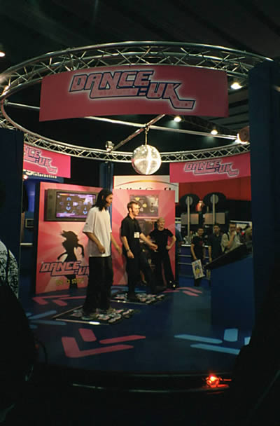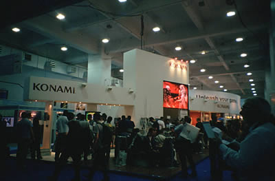 El stand de Konami fue, a lo largo de todo el show y como era de esperar, uno de los más concurridos. Ya fuera por el trailer de Metal Gear Solid 3, la fugaz presencia de Hideo Kojima, los numerosos juegos jugables o por las dos adorables chicas que bailaban con Dancing Stage Fever, la esquina que ocupaba la compañía japonesa estaba siempre rebosante de gente. Tuvieron especial éxito las ocho pantallas con Pro Evolution Soccer 3, con sus propios sofás, que no pararon de disputar partidos de dos jugadores ni un minuto. El nuevo trailer de MGS 3 era proyectado cada hora en punto en la pantalla gigante (es un decir) ante un público fiel y expectante. Por su parte, la incursión de la saga MGS en GameCube, Twin Snakes, gozaba de dos pantallas que exhibían la misma demo del E3. Castlevania: Lament of Innocence fue uno de los juegos con más éxito, ya fuera por calidad o por el renombre de la saga. Completaban el stand el impresionante ZOE 2, el juego de las Tortugas Ninja (un beat’em up en Cel Shading), una cabina con Karaoke Stage y el nombrado juego de baile. Todo ello para conformar uno de los mejores stands del ECTS.