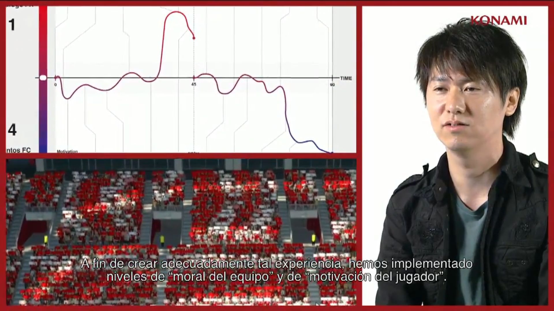 El tercer juego en discordia en esta conferencia previa al E3 ha sido Pro Evolution Soccer 2014, del que conocimos los primeros detalles hace unos días, así como las plataformas en las que se lanzará: PlayStation 3, PSP, Xbox 360 y PC, dejando este año de lado la nueva generación. El objetivo de PES 2014 ha sido capturar la verdadera esencia del fútbol, para lo que han utilizado un nuevo motor gráfico con el fin de innovar y transformar las mecánicas jugables. Este nuevo motor es una versión modificada del Fox Engine, creado por Kojima Productions, sobre el que han construido el nuevo sistema de juego llamado "Fluidity".