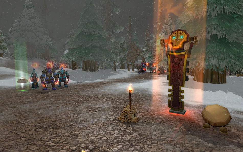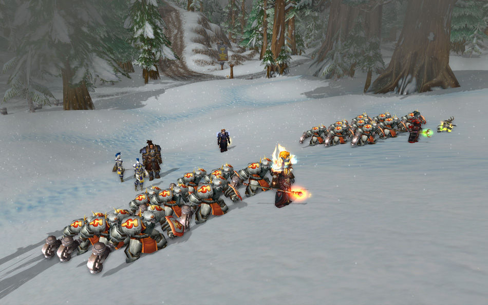 El campo de batalla se llama Cañón del Céfiro, y está situado en el Valle de los Cuatro Vientos, donde la Alianza y la Horda están combatiendo entre ellos. Así, hay elementos de ambos. Y la nueva arena es la Cima del Tigre, con estatuas del Tigre en medio, y un poco de nieve cayendo sobre ella, aunque no demasiada, para que no distraiga. Creo que los jugadores agradecerán ver mayor diversidad en estos entornos, que no han visto antes.