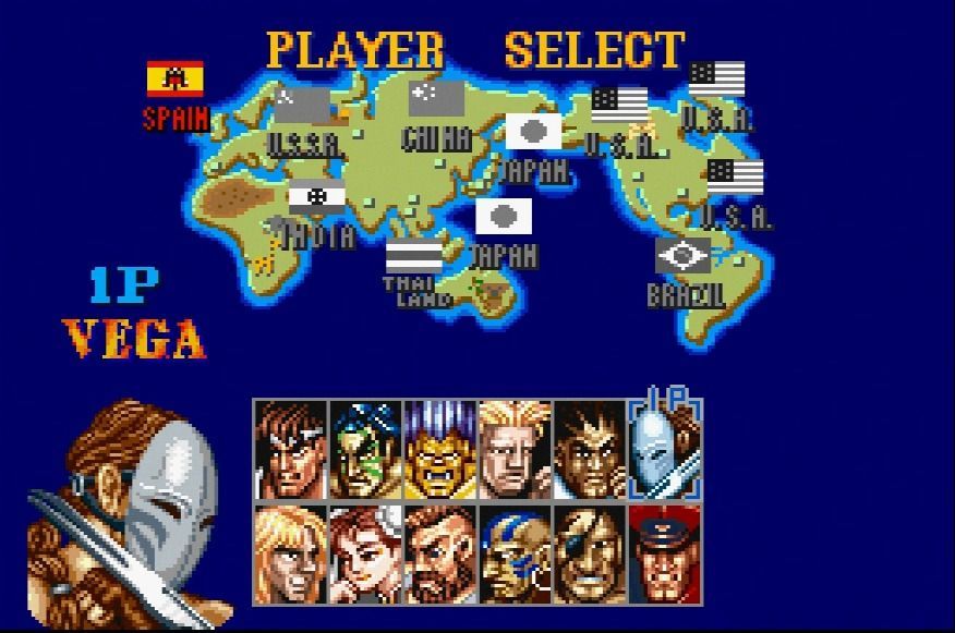 Siguiendo con la serie Street Fighter, su entrega más emblemática hasta la fecha, Street Fighter II, ha tenido múltiples ediciones a lo largo de la historia y en ellas se han encontrado cambios varios, uno de ellos relacionado con la bandera. La versión original de este mítico juego de Capcom relacionó a España con sus píxeles con la bandera franquista en lugar de la contemporánea.