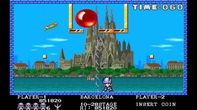 Otro clásico como Pang también nos ha dejado con momentos divertidos dentro de nuestras fronteras. La primera entrega de este mítico juego arcade cuenta con un escenario con la Sagrada Familia, el monumento más exitoso de nuestro reportaje.