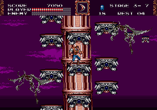 Se eliminaron algunos elementos como los famosos candelabros, pero el sistema de corazones y sub-items , clásico en la saga, siguió presente. El juego era inmensamente difícil ya que solo teníamos una vida (es un Arcade) y teníamos que sobrellevarla durante seis fases con momentos verdaderamente desesperantes. No diremos que imposible, ya que mediante un ejercicio de memorización de rutinas (a lo Toki) el juego no debía ser tan difícil, pero para los gustos actuales se hace prácticamente injugable. Técnicamente corría sobre el hardware que usó el mítico Super Contra, con lo cual el juego mostraba grandes sprites pero a costa de poner un número de colores muy bajo, lo que se cargaba algunas estancias del juego. No obstante sabiendo como eran las versiones de NES de la época, es sin duda todo un avance. La música es magnifica y contiene algunos temas que se repetirían en sucesivas ediciones del juego.