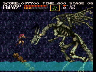 Para muchos es el mejor Castlevania de todos los existentes. Fue uno de los primeros títulos para la flamante Super Nintendo y tal vez el mejor de su tiempo. Desarrollado por la mítica "Treasure" antes de su separación de Konami este juego en realidad era un remake del Castlevania original pero al que no sólo se le retocó la parte estética. De hecho lo que más cambió fue la parte jugable controlando al Simon Belmont más habilidoso con el látigo que ningún otro. El juego se desarrollaba por fases lineales como en el original y en cada final de fase teníamos que vernos las caras con un Final Boss. El acabado gráfico del juego era increible, usando la gama de 256 colores que la SNES podía poner en pantalla, transparencias, morphings, zooms, y rotaciones como las del nivel que te tienes que colgar de un saliente con el látigo... todo ello cortesía del Ghost Layering y el célebre Modo 7 de la máquina. La ambientación tétrica que desprendía este juego no la ha conseguido ni siquiera los Castlevania actuales, con unos parajes desoladores, otros realmente bonitos como la caverna e incluso alguno que rayan la paranoia (esa habitacion con fondo ondulatorio). Esto se traducía en fases muy diversas, desde los jardines del castillo, hasta la clock tower, pasando por las salas de tortura, la del tesoro, cavernas, bosques... todas ellas muy diferentes y con una gran variedad de enemigos. A destacar también los varios planos de scroll y enemigos realmente gigantes. La animación de Simon era muy buena al igual que su sprite, grande, generosamente tratado y lleno de detalles, asi como un diseño de enemigos casi perfecto.