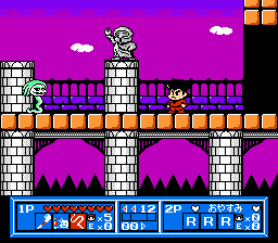 La secuela del original, de gran calidad era mucho más divertida que este al contar con un argumento divertido y algunas fases de shooter. Se añadía a gente de otros juegos más conocidos en Occidente como los protagonistas Contra. Tristemente la caída de la NES a principios de los 90 hizo imposible su publicación en EEUU. La fase de Castlevania mezclaba elementos de varios juegos y era más corta que la del Wai Wai original.