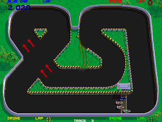 Volvamos a los tiempos donde el césped era verde, los pelos cardados y las chupas tachueladas, esto es, los 80. El primer juego donde encontramos antecedentes de Mario Kart es en el Championship Sprint (1986), es uno de los primeros juegos en permitir el multijugador y con elementos propios como los power-ups entre cada nivel. Era la secuela de una maquina mecánica de los años 30 llamada Sprint y la actualización de los videojuegos basados en esta de Kee Games de finales de los 70. Nos centramos en este juego porque es uno de los primeros que usa Power-Ups, entre carreras eso si, pero Power-Ups al fin y al cabo, el cual es un elemento sustancial en este tipo de juegos. Aparte la recreativa permitía ya dos jugadores a la vez, pieza esencial en los juegos de este tipo.