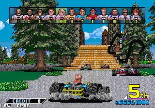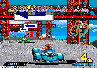 Es uno de los juegos primigenios en usar Scaling y para la época lucia impresionante en la recreativa, la música era bastante buena como solía ser habitual por Sega y ofrecía el clásico sistema Arcade de superación de niveles. Si el jugador se pasaba los cinco niveles de la maquina (de veinticinco, el clásico sistema de rutas de Sega) en primer lugar podría jugar un nivel bono con la moto de Super Hang-Ong o el avión de Afterburner. También es conveniente resaltar los marcadores, los cuales se usarían en el juego de Nintendo casi con el mismo diseño.