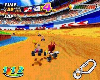 La lista de clones mediocres de Mario Kart en PSX no tiene parangón en ninguna otra consola, podría empezar a mencionar juegos y no parar, pero citare algunos de calidad mediana tirando a alta. Muppets Racemania (2000) es el padre oficioso de muchos de ellos y es un juego de calidad mediana, técnicamente flojo pero que se dejaba jugar.