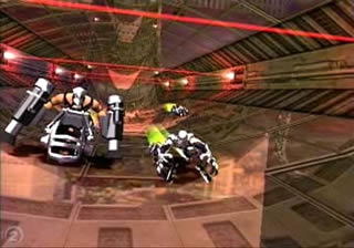 No me gustaría acabar este extenso repaso a la historia de los juegos de velocidad futurista sin nombrar los últimos lanzamientos del género para los 128 bits. A los ya nombrados WipEout Fusion, Extreme-G 3 y XGRA vale la pena destacar Kinetica (2001, Sony Computer Entertainment) para PS2, un original juego donde los corredores son los propios vehículos al tener unos trajes especiales en donde sus extremidades están fusionadas a ruedas. Con algunos buenos detalles como las completas animaciones de los corredores o algunos circuitos de bella factura técnica, la drástica bajada de framerate que se produce en cuanto se acumulan varios corredores en pantalla así como un manejo totalmente incontrolable a altas velocidades hacen que el juego pierda muchos enteros.