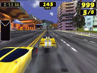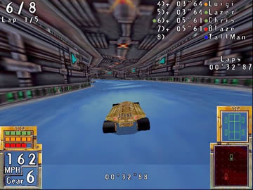 ¿Y en el terreno de las coin-ops? También hubo algún que otro exponente del género que vamos a nombrar. En Vapor TRX (1998 – Atari Games) manejamos unas extrañas naves con armamento que vuelan a una cierta altura (nada que ver con F-Zero y similares). Siendo fácil de manejar y muy divertido, técnicamente no era nada del otro mundo. HyperDrive (1998, Midway) por desgracia adolecía de todas las virtudes del anterior. Esta vez se trata de carreras con aeronaves en circuitos que transcurrían por el espacio. Nulo en originalidad, lento, circuitos previsibles… y aunque gráficamente parecía asombroso (las fotos engañaban bastante) todo cambiaba al verlo en movimiento.