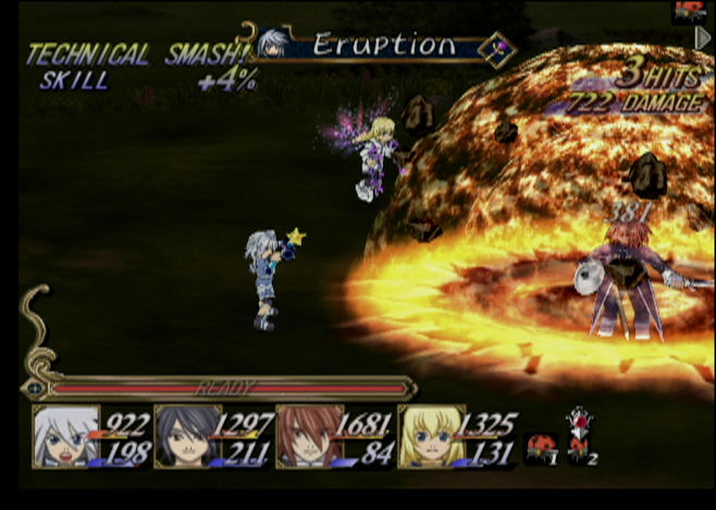 Además, aquí el uso de las habilidades estaba algo más limitado, ya que en vez de usar TP (el equivalente a los puntos de magia en Tales of) tendríamos que esperar a que se recargaran. Además, como novedad, al finalizar cada combate recibiríamos unos puntos especiales que podríamos usar para modificar y mejorar los parámetros de nuestro equipo.