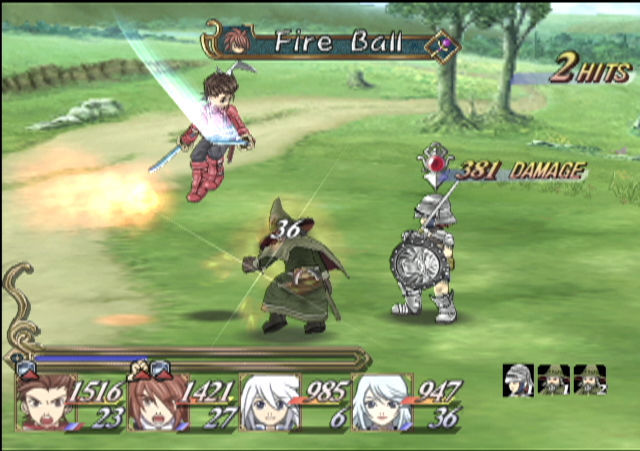 El sistema de combate bebía directamente de lo visto en Tales of Innocence, aunque esta vez se le dio muchísima más importancia a los elementos, por lo que saber explotar las debilidades elementales de nuestros enemigos era realmente importante. Por otra parte, se introdujo un sistema de captura de monstruos al estilo Pokémon, gracias al cual podíamos completar a nuestro grupo, ya que Emil y Marta eran los únicos personajes de la aventura (de vez en cuando se nos unían los de Symphonia, pero estos solo subían de nivel según lo dictara el argumento, por lo que no recibían experiencia tras las batallas) y quedaban dos huecos libres.