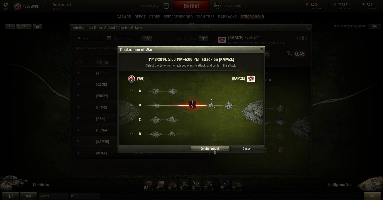 Cuando un clan quiere atacar a otro consulta las horas en que este segundo está disponible para combatir y las líneas que tiene abiertas para luchar y define desde qué línea suya va a atacar la línea que decida del rival, ya que la lucha se establece entre dos líneas de cada clan. Una vez que llega la hora establecida empieza la batalla por la primera estructura de la línea.