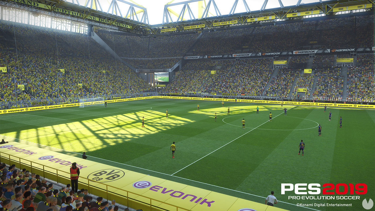 En cuanto a los estadios, PES 2019 incluye multitud de feudos reales que se unen al Camp Nou, con reproducciones muy fieles de Anfield, San Siro, Johan Cruyff Arena o Celtic Park, contando también con una gran cantidad de emplazamientos ficticios. Sin duda, Konami sigue haciendo el esfuerzo de incorporar nuevas licencias oficiales que suplan la enorme falta de equipos, ligas y estadios reales, contando además con la inestimable ayuda de la comunidad, consiguiendo paliar parcialmente las grandes deficiencias de uno de sus apartados más flojos.
