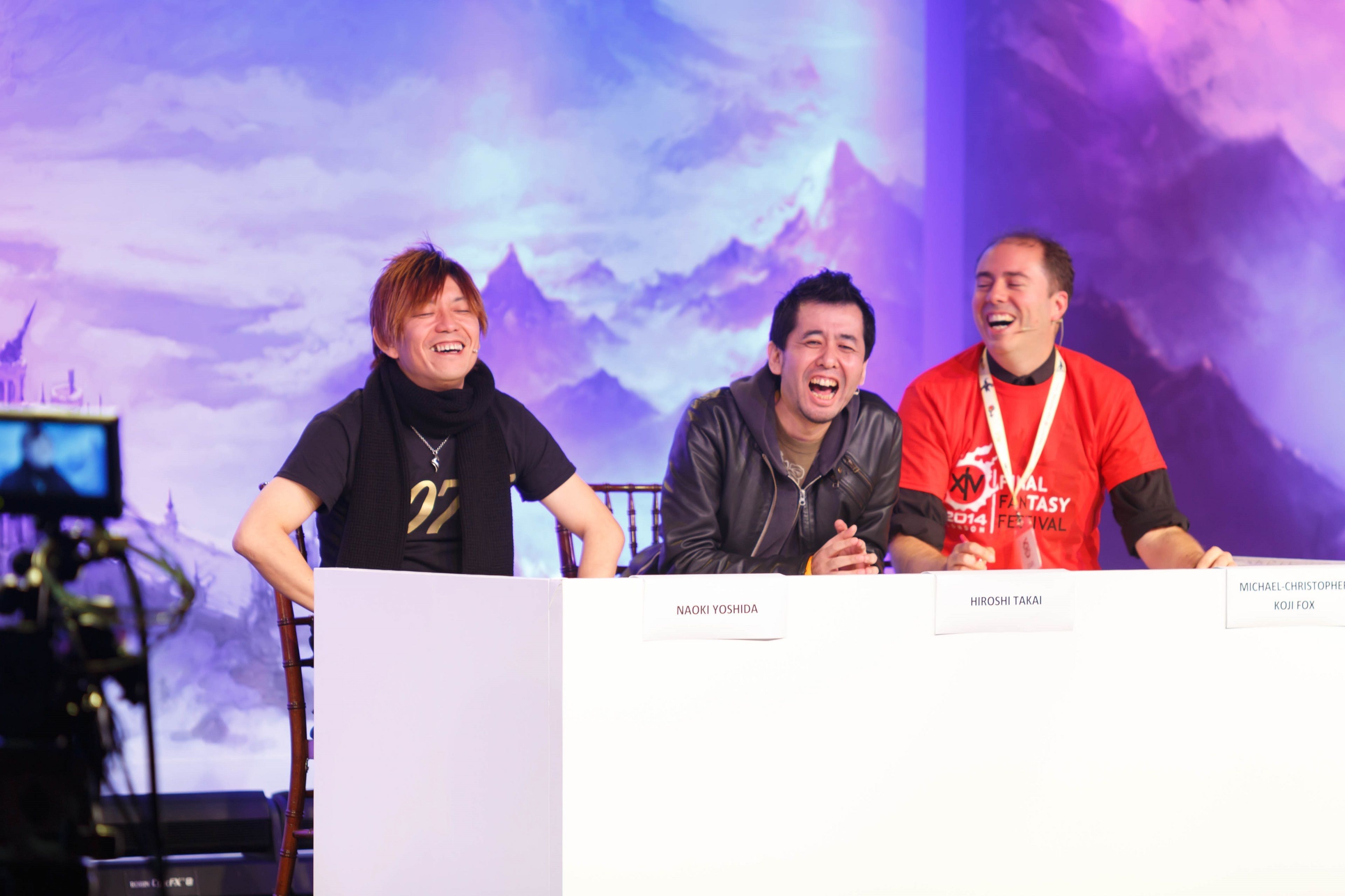 La ceremonia de apertura estuvo dirigida por el propio Naoki Yoshida (director y productor), que tras cortinas de humo de colores apareció disfrazado de mago negro para darnos la bienvenida al evento. No tardó en acompañarle Koji Fox (traductor principal de las expansiones de Final Fantasy XI y Final Fantasy XIV en su totalidad), que con un tono humorístico se metió al público en el bolsillo. Así, entre bromas y chascarrillos, la pareja empezó a comentar las novedades que se avecinan para Eorzea.