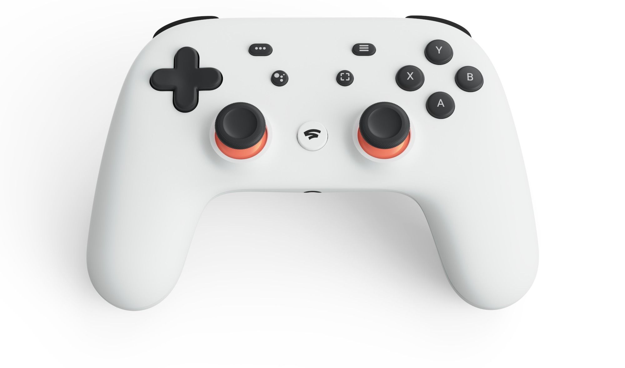 Lo que sí tendrá Stadia a nivel de hardware físico y tangible es un mando inalámbrico que se conectará por Wifi, diseñado para la ocasión. Aunque es compatible con cualquier mando USB, la idea de Google con este dispositivo es integrar al máximo el ecosistema existente de la empresa, conectándose directamente a los centros de datos a través de la red Wifi, minimizando la latencia en el juego y así evitar pasar por la pantalla, teléfono, tablet u ordenador, mandando directamente las órdenes al servidor que procesa el juego. El mando inalámbrico cuenta con un botón de Compartir, que captura pantallas y vídeos que las comparte al instante en portales como YouTube o redes sociales como Twitter, y que además es capaz de guardar automáticamente una transmisión a resolución 4K y 60 frames por segundo de los videojuegos a los que estemos jugando hasta que deseemos compartirlos, es aquí cuando entra State Share.