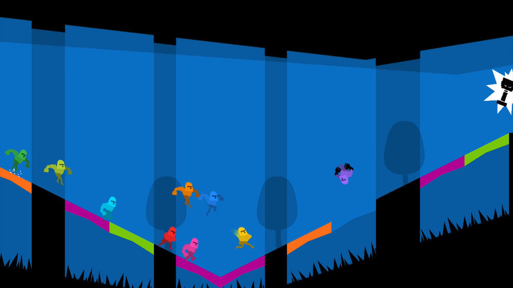 "Runbow", avalado por Nintendo, es una colorida aventura de carreras en la que se podrán retar hasta nueve jugadores. Los protagonistas se enfrentarán en varios escenarios dinámicos que van presentando obstáculos mientras algunos elementos comienzan a desaparecer por una pantalla en la que los colores van variando. Si tropiezas con alguno de estos obstáculos o caes en una parte del escenario que haya sido eliminada, quedarás descalificado de la carrera. Runbow es divertido, a la vez que frenético. Estará disponible el próximo año para Wii U y podremos jugarlo online o local con amigos y familiares.