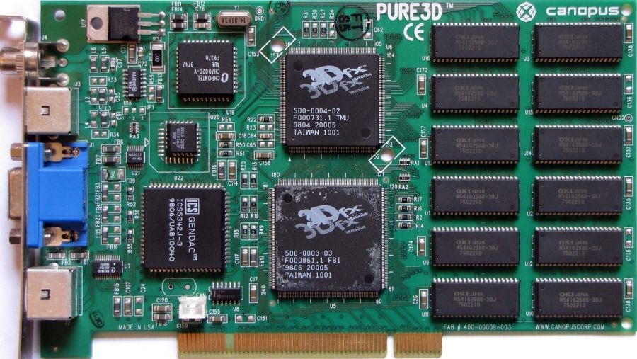 Otro de los hechos históricos fueron la llegada de las primeras gráficas 2D/3D que comenzaron a fabricarse por Matrox, Creative, S3 y ATI aunque el verdadero golpe lo dio 3dfx en el 97 con el chip gráfico Voodoo con una gran potencia de cálculo y nuevos efectos 3D listos para nuestros equipos de sobremesa. En este terreno llegará también NVIDIA que, con sus gráficas TNT y TNT2 plantaría cara a 3dfx.