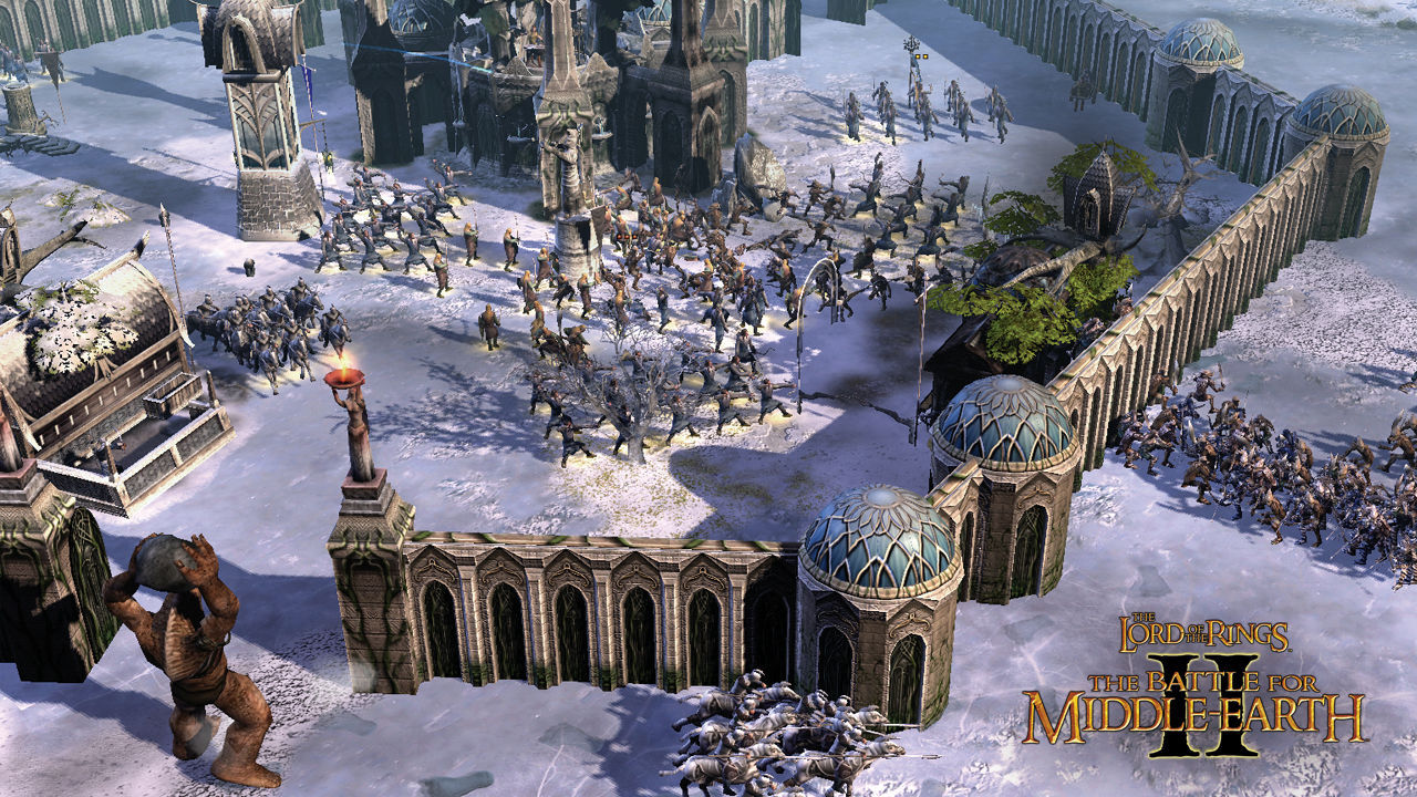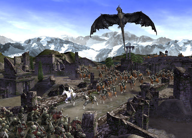 También en Navidades de 2004, EA lanzó otro de sus pilares fundamentales relacionados con El Señor de los Anillos: Batalla por la Tierra Media. Batalla por la Tierra Media supuso un cambio absoluto dentro de la política de EA para con los juegos basados con su preciada licencia. Para empezar, se abandonó la perspectiva en tercera persona propia del género de acción y aventura, y dentro del marco exclusivo de juego para PC, se volcaron en ofrecer un juego de estrategia en tiempo real de lo más ambicioso y colosal. Batalla por la Tierra Media fue toda una revolución para la época, pues nos permitía manejar ingentes cantidades de soldados y efectivos, así como de criaturas y monturas, en dos campañas bien diferenciadas.