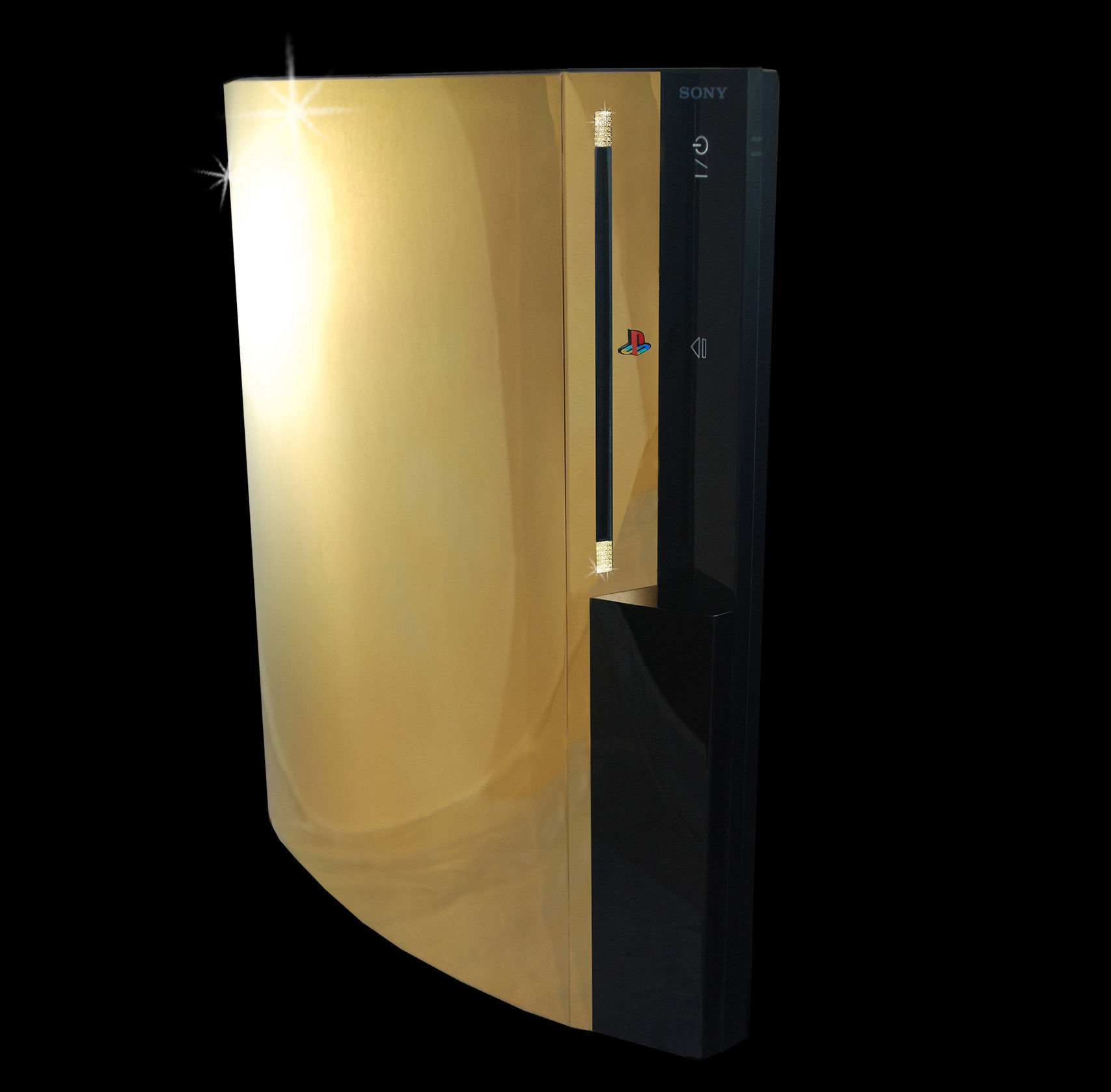 Otra variante dorada más de PlayStation 3, en este caso el modelo Slim. Por 5000 dólares se podía comprar esta consola de 24 quilates con logos personalizados en cromo, cromo negro, oro de 24 quilates, oro blanco, oro rosa, platino, diamantes o cualquier material exótico. Ya puestos a comprar, mejor no escatimar en gastos. Además, venía acompañada de dos DualShock 3, también en oro, que imaginamos que no harían muy cómodo su peso.