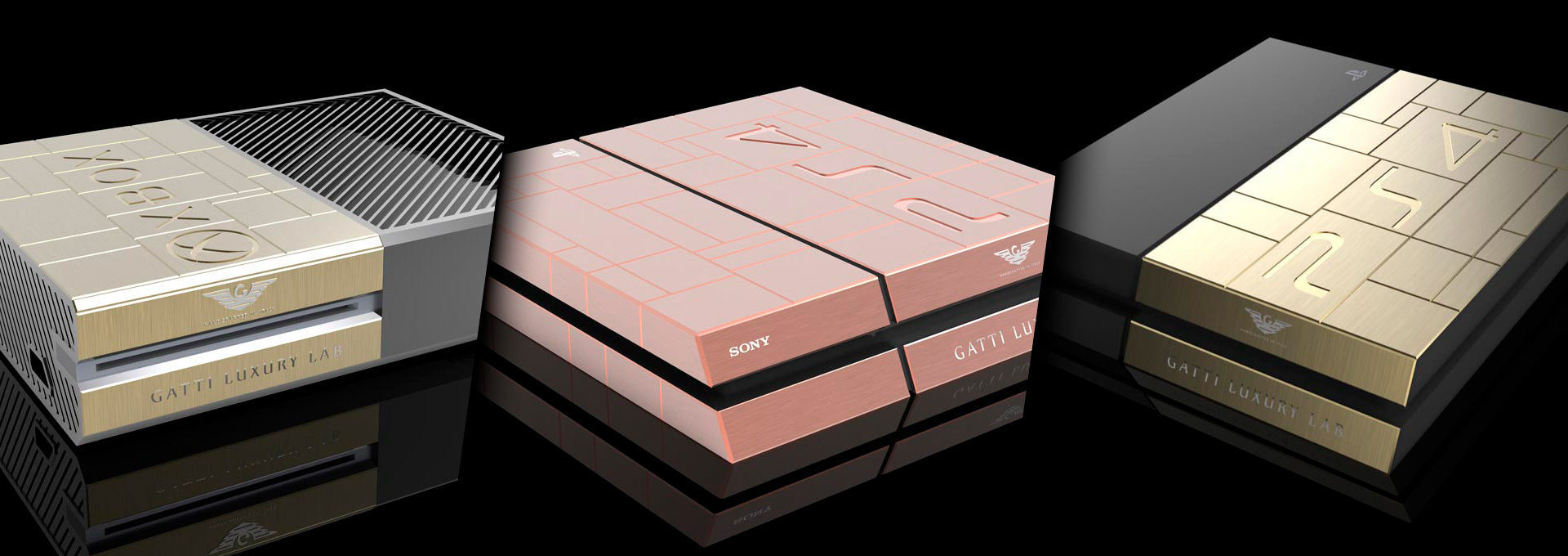 El joyero italiano Gatti Luxury Lab creó en 2014 estos modelos de Xbox One y PlayStation 4 con oro -y oro rosa también para PS4- que inicialmente se pusieron a la venta en Games14 de Dubai. De nuevo, las consolas no se diferenciaban más que la sustitución de partes de la carcasa por 220 gramos de oro y alcanzaron un precio de unos 12.500 euros cada una. En este caso, teniendo en cuenta las excentricidades de Dubái, es posible que se vendieran algunas unidades.
