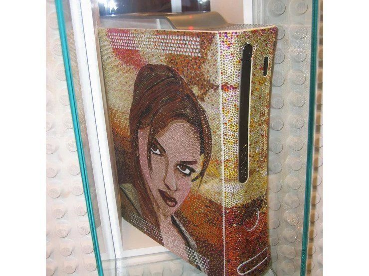 Una Xbox 360 con piedras preciosas en toda su superficie, pero no de manera aleatoria: muestran el retrato de Lara Croft en Tomb Raider: Legend. En total más de 11.000 piedras preciosas que ascendían el precio de estas escasas consolas –sólo se produjeron unas pocas- a 11.000 dólares. Un modelo para nostálgicos, ya que las generaciones más jóvenes asocian el rostro de la protagonista con el más joven de las precuelas.