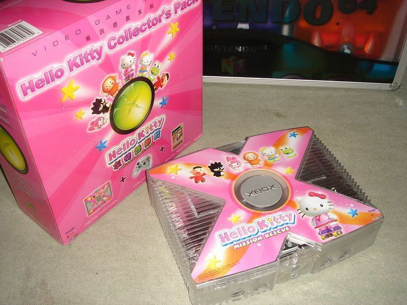 Los fans curiosos de la primera Xbox seguramente recuerden este modelo de 2005 que se lanzó junto con el juego Hello Kitty Mission Rescue y un mando White Controller S: consola transparente salvo en la forma de la X, de color rosa y con imágenes del personaje. Se hicieron 550 unidades y sólo se podían conseguir comprando una televisión de 5000 dólares de una cadena concreta. Aparentemente iba a tener un mando especial también, pero fue cancelado. Hoy su precio va de los 500 a los 1000 dólares.