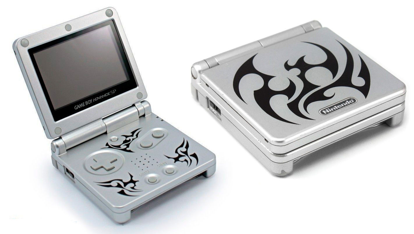 Terminamos nuestro repaso con un modelo de GBA SP llamativo… y no por su buen gusto. En lugar de lanzar una edición conmemorativa de algún juego o saga, esta consola plateada mostraba en la parte exterior y su interior varios logotipos tribales. ¿Alguna razón para ello? Realmente no, salvo que estos tatuajes estuvieron muy de moda a principios de los 2000. En su momento Mister Cartoon, tatuador de celebridades como Eminem, 50 Cent, Beyoncé o Justin Timberlike, declaró que "los tatuajes están de moda actualmente - todo el mundo quiere uno. Creo que la consola es genial y será un gran éxito entre los jugones más sofisticados".