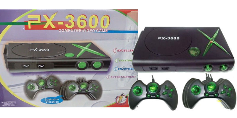 ¿Pensabas que no había falsificaciones de las consolas de Microsoft en esta lista? Pues, sorpresa. La PX-3600 es un clon de Xbox con un diseño híbrido entre Xbox 360 y PS3, aunque sin tanta potencia y una lista de 101 juegos de 8 bits que estaban previamente instalados. Lo más interesante de este clon de Xbox es su mando con función de vibración y la opción de conectar una pistola de luz. En resumen, una consola que no sirve para gran cosa.