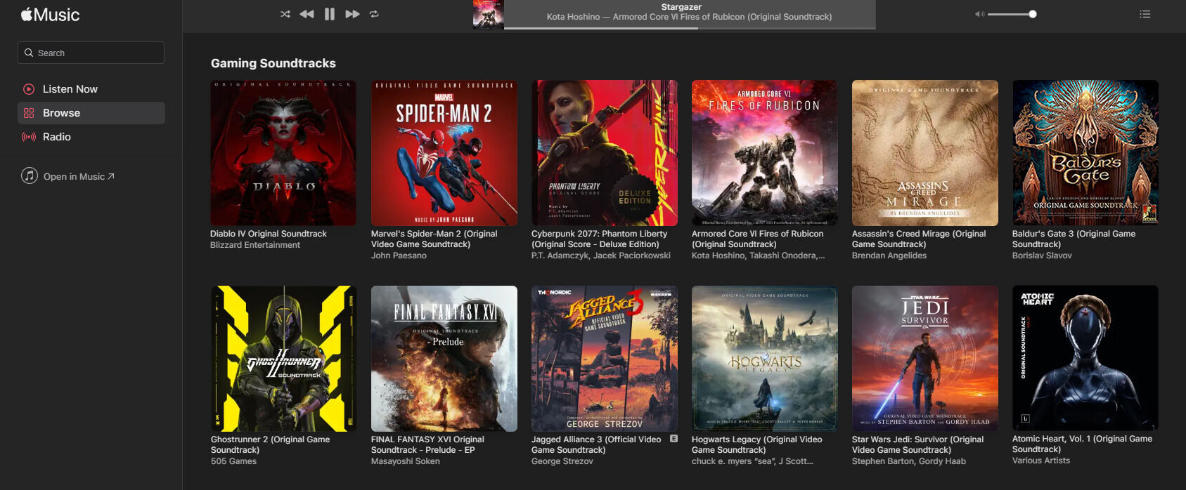 Por supuesto también nos acordamos de esos juegos más pequeños e indies, que es donde entran propuestas como la de Thomas Brunet en Chants of Sennaar o Jakob Schmid en Cocoon, la bella música de Jusant de Guillaume Ferran, Under The Waves de Nicolas Bredin o la increíble orquestación de Takashi Furukawa para Planet of Lana, el que fuese el último compositor en trabajar para el Team Ico. No podemos dejar fuera tampoco el nuevo juego con Lena Raine, Harmony: The Fall of Reverie, las canciones del llamativo título musical Goodbye Volcano High y los exitazos de dos de nuestras compositoras españolas: Paula Ruiz ‘fingerspit’ con ese nuevo The Cosmic Wheel Sisterhood y Beícoli con Laika: Aged Through Blood, que han sido dos de nuestras favoritas en el catálogo independiente de este año. Y a modo de curiosidad final queremos mencionar el FPS retro Warhammer 40,000: Boltgun, que si bien no se trata de música original del juego ha tenido la brillante idea de rescatar las canciones del álbum Oblivion de la banda D-Rok, que perteneció al sello de Warhammer en los años noventa.