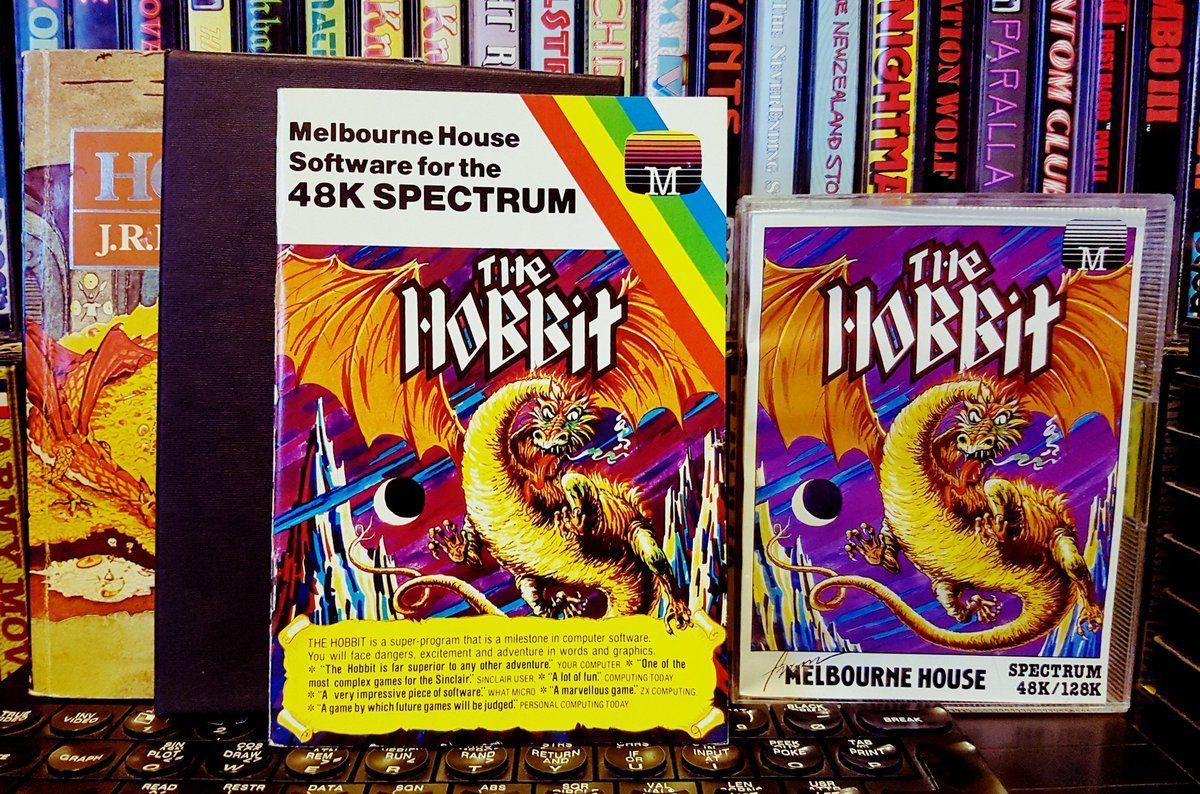 La comercialización de los derechos por parte de Saul Zaentz dio como resultado la aparición de juegos de rol, figuras, miniaturas… Y videojuegos. Allá por 1982, cuando parecía desvanecida ya toda esperanza -y tras algunos rara avis en forma de juego sin licencia, como The Shire, Ringen o Moria-, Melbourne House y Beam Software dieron luz verde a una de las aventuras gráficas conversacionales más redondas y completas de la historia del videojuego: The Hobbit. Lanzada en 1982 para Amstrad, Spectrum, Commodore 64, Apple II y MSX -incluso en plataformas menos habituales para la época, como el Dragon 32 y el Oric- The Hobbit conseguía recrear el libro de Tolkien de manera sorprendentemente milimétrica, trasladando pasajes enteros de la novela original, y ofreciendo escenarios, además de multitud de personajes con los que hablar, interactivos.
