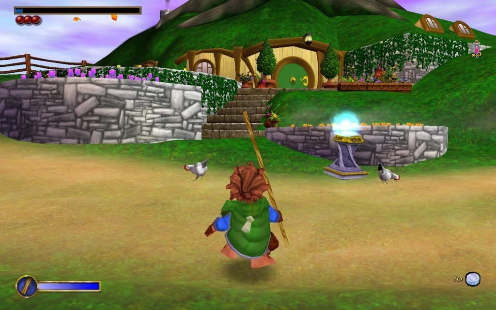 El videojuego empezaba con Frodo Bolsón recibiendo el deseado y codiciado anillo, con Gandalf explicándole los avatares del viaje de su tío y los peligros convocados por el Señor Oscuro Sauron para recuperarlo, que deseaba conseguirlo con toda su alma. Antes de embarcarnos en la aventura para llegar a la ciudad de Bree -donde Gandalf nos esperaría en la taberna del Poney Pisador- podíamos darle los papeles de la escritura a Lobelia Sacovilla Bolsón, expulsar algunos lobos de las lindes de la Comarca, ayudar a los habitantes de la zona o pasear por los interiores de Bolsón Cerrado, en un intento de aportar una nueva dimensión jugable a la mecánica principal del juego, que engarzaba el control sobre Frodo -que podía usar el anillo- con la acción y la fuerza física de la mano de Aragorn o la magia e inteligencia de Gandalf para resolver puzles.