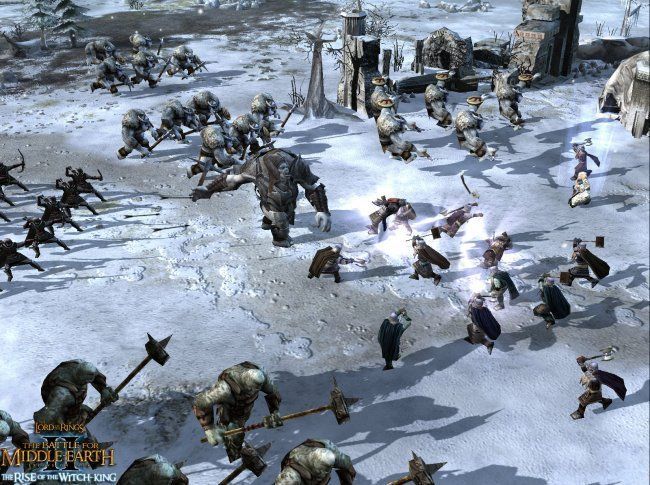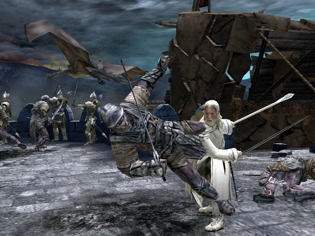 The War of the Ring era un RTS -juego de estrategia en tiempo real, en sus siglas en inglés- muy al uso, con diferentes facciones y bandos -podíamos encarnar a las tropas de la Oscuridad o al bando de la Luz- y una serie de escenarios reconocibles, que explotaban elementos recogidos en las novelas de Tolkien, y que ofrecían la posibilidad de ser reescritas a nuestro antojo. El sistema de juego era sencillo -basado en la recolección- y el estilo artístico, pese a lo ramplón y anodino -no tenía apenas pizca de originalidad-, funcionaba con lo directo de su planteamiento. Fue lanzado de forma exclusiva en PC y no cuajó ni en ventas ni en crítica, lo que supuso otro golpe más para Vivendi en su particular odisea por traer un juego basado en los libros sin perecer en el intento. EA, por su parte, seguía cosechando éxito. Tras el gran resultado obtenido -a todos los niveles- por Las dos torres, la editora tenía ya preparado su siguiente golpe en forma de videojuego: El retorno del Rey. Una vez más, la adaptación de Electronic Arts llegó al mismo tiempo que el último capítulo del tríptico cinematográfico de Peter Jackson.