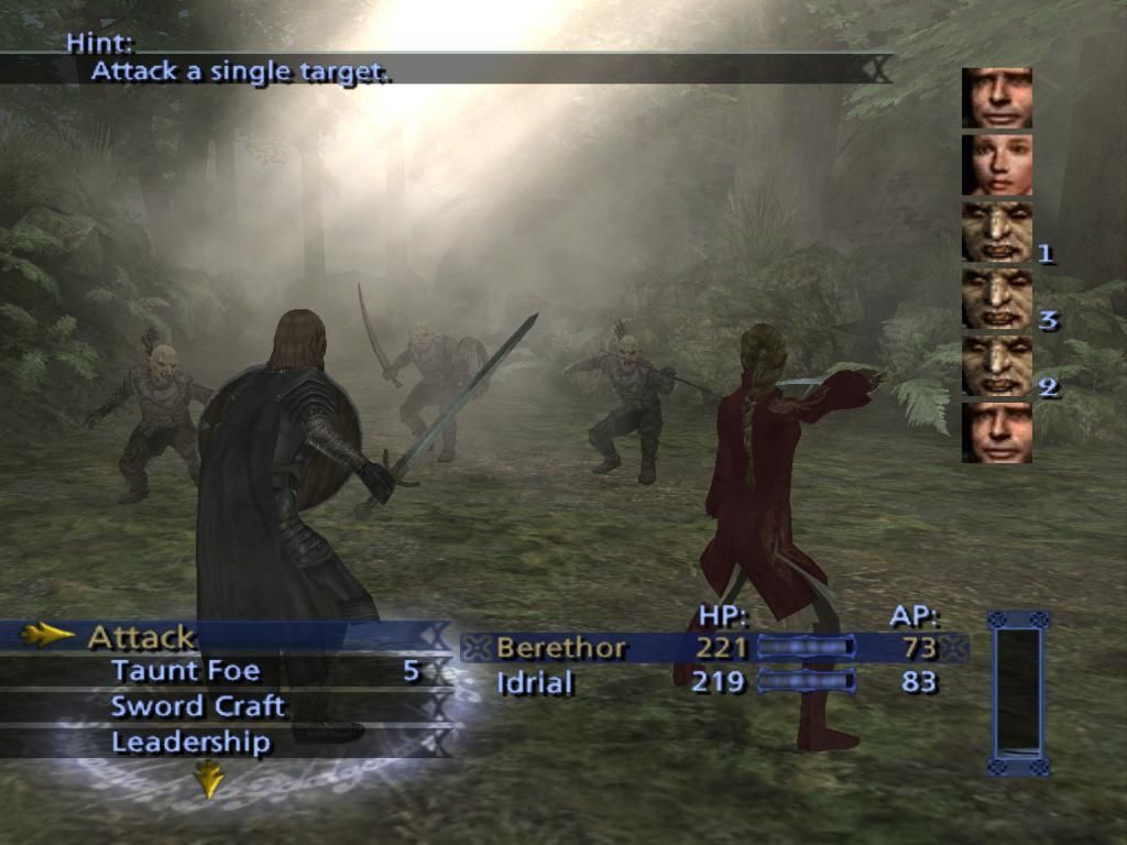 Bajo esta premisa en 2004 llegó El Señor de los Anillos: La Tercera Edad. El juego se saltó a la torera cualquier coherencia argumental que se pudiera uno imaginar -de hecho, no era canónico-, pero apostaba por un sistema de rol muy completo y versátil, que traía ciertas reminiscencias a los grandes del género, con batallas activas, una personalización de héroes bastante versátil y las consabidas fases de exploración. El argumento nos llevaba a formar una compañía alternativa que seguía los pasos de la comunidad del anillo original en un intento de garantizar la seguridad y aportarle refuerzos contra las malas artes del enemigo. De esta manera, y encabezados por Berethor -un Guardián de la Ciudadela de Gondor-, nos enrolábamos en una aventura en la que siempre íbamos un paso por detrás de los hechos narrados en las películas, visitando nuevas zonas y escenarios y visualizando algunos de los momentos más emblemáticos desde una perspectiva distinta. La Tercera Edad tenía momentos un tanto estrafalarios, que iban desde una batalla a cuatro contra el Balrog o un clímax donde nuestro grupo de héroes se enfrentaba al mismísimo Sauron en la torre de Barad-dûr, pero funcionaba como juego y resultaba entretenido y largo.