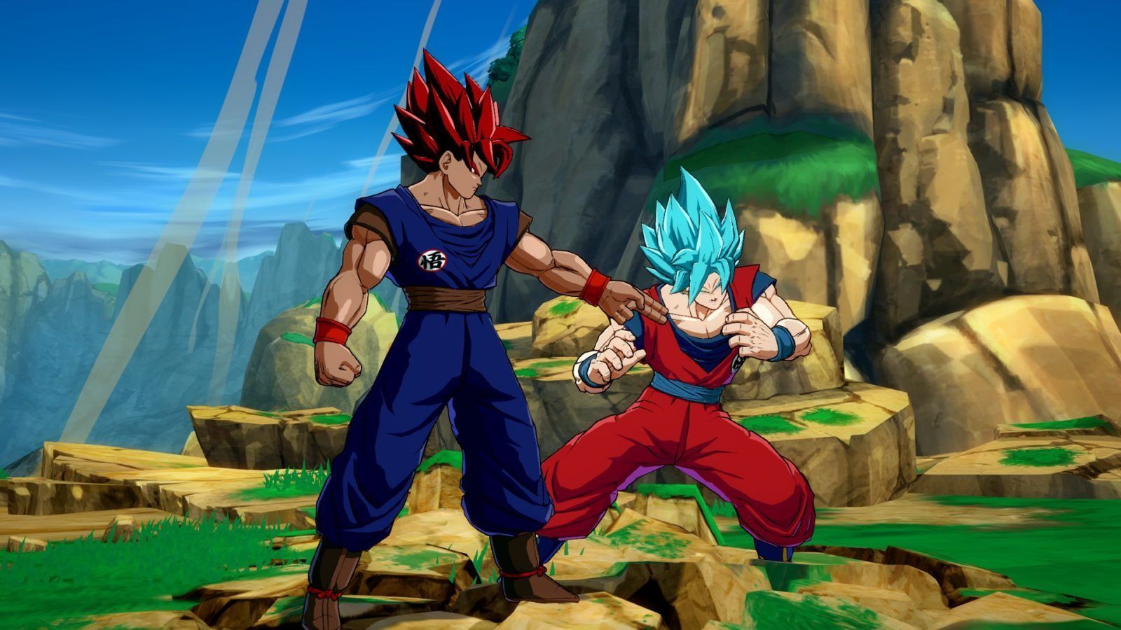 La fase incompleta de transformación en Saiyan que pudimos ver en El Super Saiyan Goku falso no está presente oficialmente en Dragon Ball FighterZ, pero los diseñadores caseros han querido integrarla mediante una alteración de Goku SSJ en su tercer color.