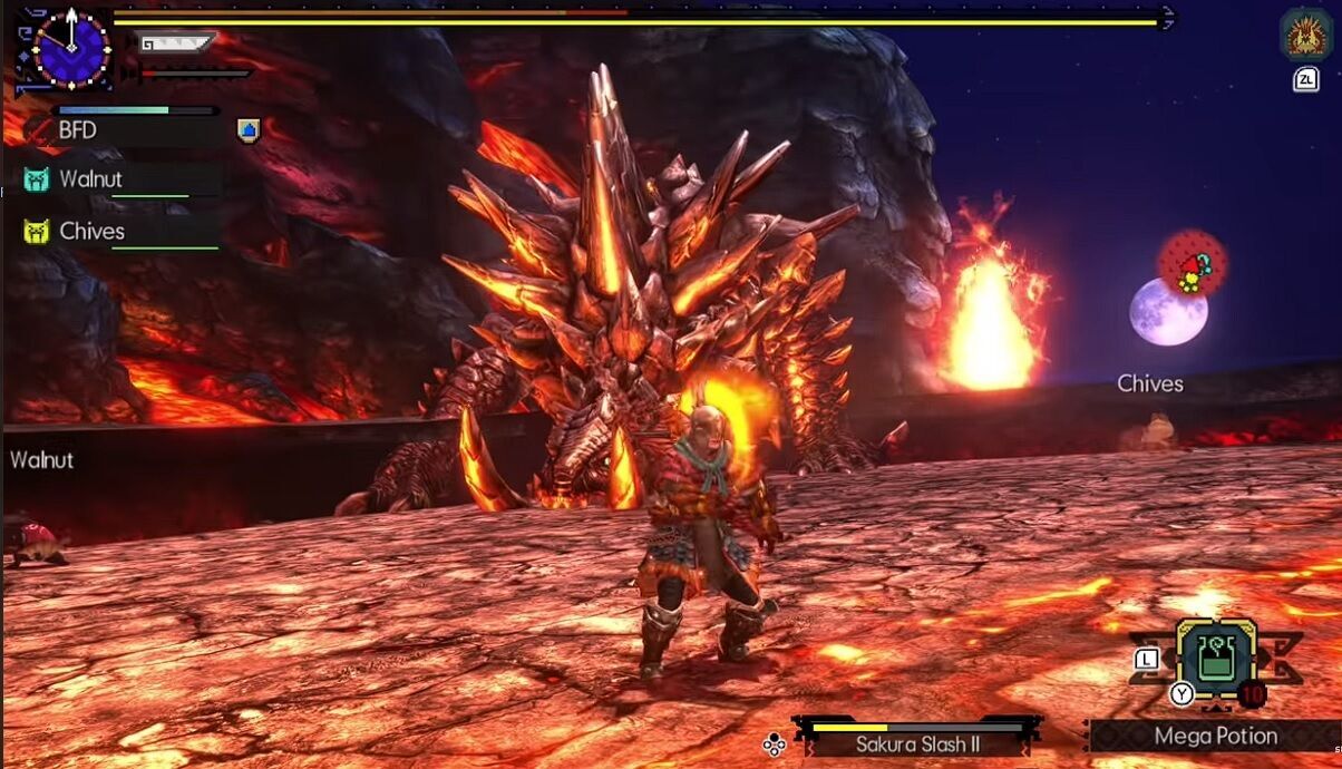 Magnamalo en Monster Hunter Rise es un wyvern brutal que puede infligir la plaga de fuego infernal. Este monstruo aparece en el Santuario de las Ruinas, donde utiliza su agilidad y poderosos ataques para dominar el combate. Este monstruo elemental de fuego es particularmente vulnerable a los ataques de agua, con su cabeza y las partes que emiten fuego infernal siendo especialmente susceptibles. Además de agua, también muestra debilidades significativas frente a ataques de rayo y hielo, mientras que es completamente resistente al fuego y al elemento Draco.