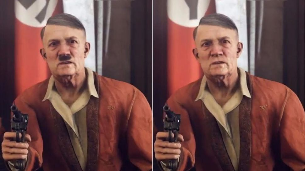 Tampoco fue suficiente para Alemania, ya que en la segunda parte de este reinicio de la saga Wolfenstein, el título contaba con un invitado que por razones obvias es ‘persona no grata’. Adolf Hitler. El remedio fue bastante cómico ya que bastó con eliminar un bigote para sortear la censura.