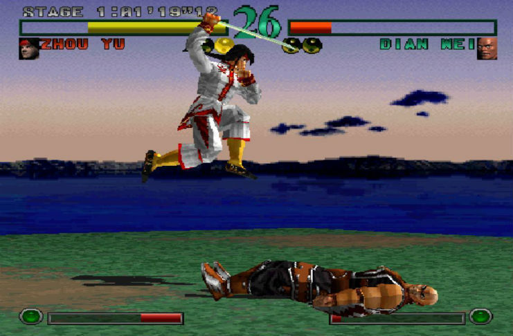 Su primera producción no tardó en llegar y en 1997 nos ofrecieron Dynasty Warriors, un juego de lucha con armas cuerpo a cuerpo al más puro estilo Soul Blade para la primera PlayStation que, a su vez, era un spin-off de Romance of the Three Kingdoms, una de las sagas más emblemáticas de Koei, por lo que estaba protagonizado por algunos de sus personajes más populares. El título tuvo una recepción aceptable por parte de la crítica gracias, entre otras cosas, a su original sistema de bloqueos, ya que en vez de disponer de un botón para defender teníamos que ejecutar golpes en la misma dirección y a la misma altura que los de nuestro rival para interceptarlos.