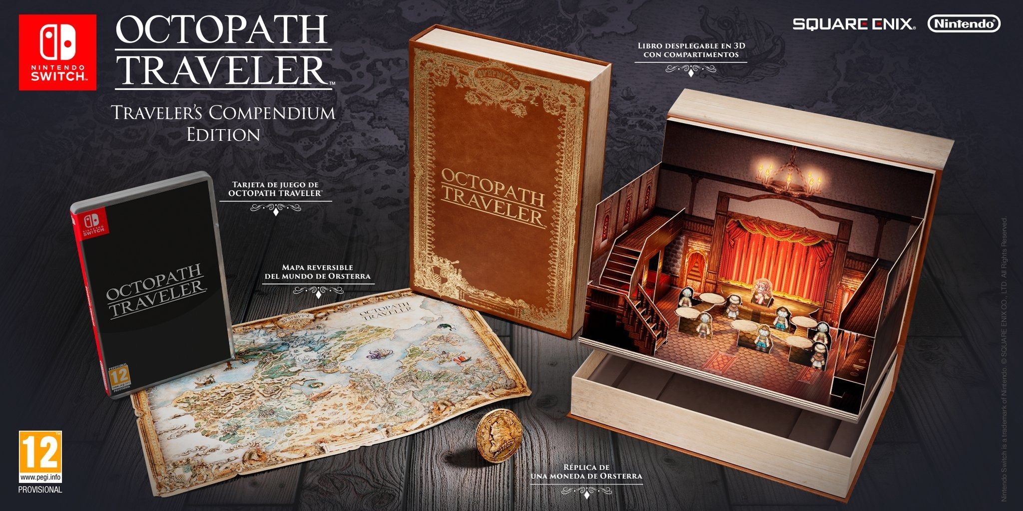 Octopath Traveler, el JRPG de Square Enix que tiene una demo disponible en la eShop y que ha dejado un gran sabor de boca a todos los amantes del rol que lo han probado, se pondrá a la venta el 13 de julio. Junto a la edición normal también se pondrá a la venta la Octopath Traveler: Traveler’s Compendium Edition, una edición especial del juego que incluye un estilizado libro pop-up, un mapa y una réplica de una moneda basada en la divisa del juego.