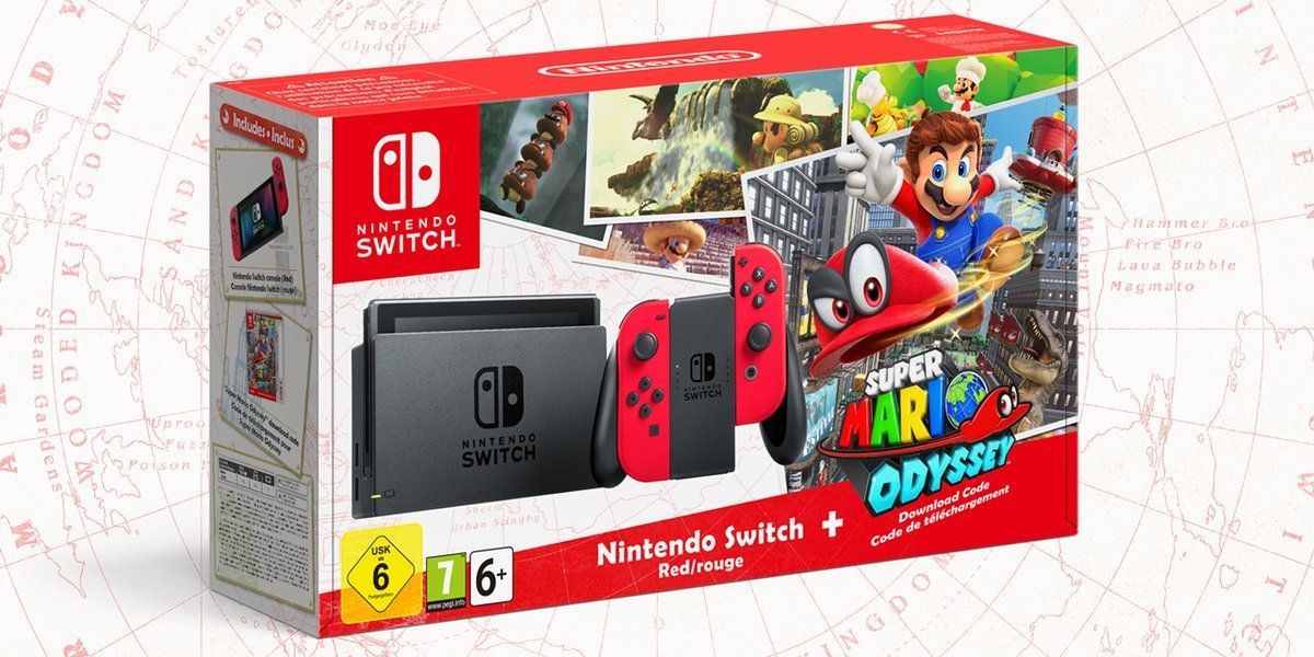 El mismo 27 de octubre se lanzará un nuevo pack que incluye una Nintendo Switch con mandos Joy-Con rojos con motivos de Mario, y un código de descarga de Super Mario Odyssey. También se pondrá a la venta funda de transporte de Switch, decorada con motivos del nuevo Mario.