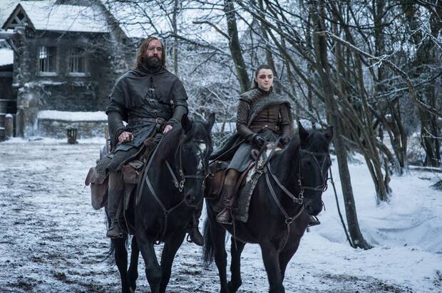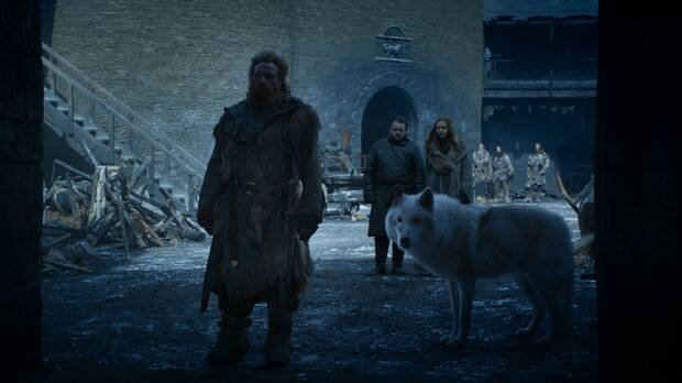 Mejor hilvanada es la despedida de Tormund (Kristofer Hivju) y Jon Nieve. El pueblo libre y el matagigantes han estado muy unidos a Jon. El cuervo les demostró su valía, los lideró y los salvó cuando nadie movió un dedo por ellos. Ambos han visto el verdadero Norte, aquel en el que noche y día se confunden y en el que la nieve lo abraza y rodea todo. Los salvajes no deben partir hacia Desembarco del Rey y librar una batalla que ni les va ni les viene. Por eso, su partida en busca de un hogar ahora que Invernalia está a salvo y los Caminantes Blancos derrotados, es lógica y plausible. La decisión de llevarse a Fantasma con ellos, el lobo huargo de Jon, es igual de bonita. El animal ha estado presente en algunos de los momentos más importantes de la serie, pero es cierto que su utilización ha estado muy restringida y a veces incluso desaprovechada o infravalorada. En camino hacia un destino incierto y sin rumbo aparente, también se encuentran dos almas solitarias con cuentas pendientes.
