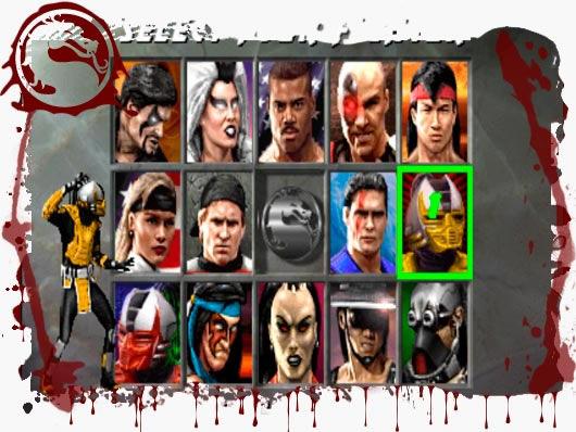 El elenco de personajes constaba de Liu Kang, el luchador "del bien" y monje Shaolin; Johnny Cage, actor de cine que entra para levantar su carrera; Sonya, perteneciente a un equipo de fuerzas especiales en búsqueda de Kano, que lucha también para liberar al resto de su grupo en manos de Shang Tsung; Kano, criminal miembro de Black Dragon; Scorpion, espectro que murió a manos de Sub-Zero; Radien, que domina la electricidad como nadie; Sub-Zero, del clan Lin Kuei y maestro en la congelación. A estos se suman Reptile, personaje secreto y también vestido como los ninjas, aunque su naturaleza se descubre años más tarde como animal.